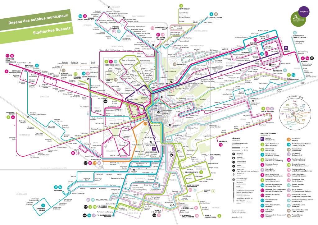 Though my own excitement about receiving the new transit map is undoubtedly in part an occupational hazard, I’ve also perceived echoes of this sentiment in recent conversations with friends and family members who live in the city. Starting in just over a week, everyday mobility will likely be at least a little different for all who live and/or work in Luxembourg City, whether they use public transportation or not. The inauguration of the new section of the tram line will be accompanied by significant changes to the city’s bus network (and changes in access for cars, pedestrians, and cyclists, too).